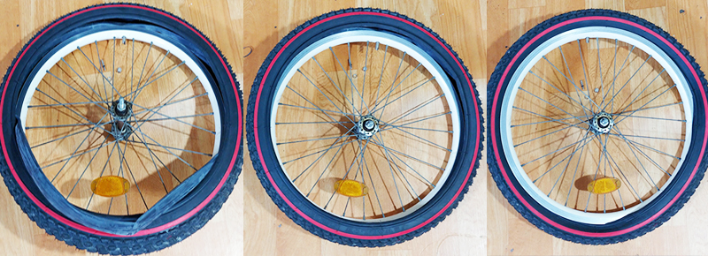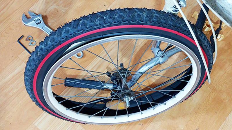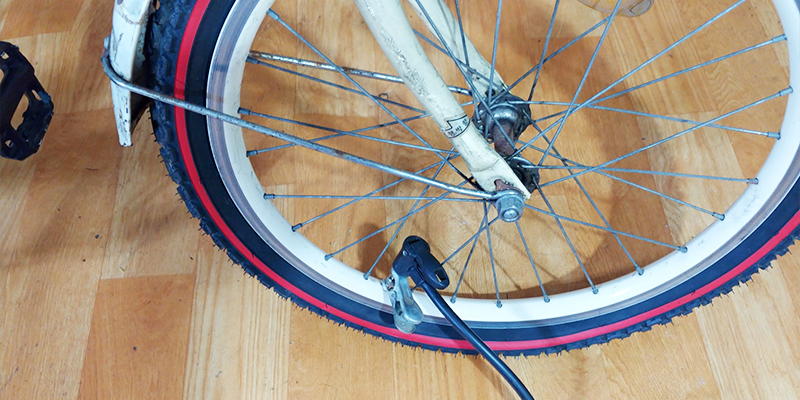 14. 자전거를 정상적으로 다시 뒤집어 놓은 후, 타이어에 공기를 3분의 2정도만 채워줍니다.