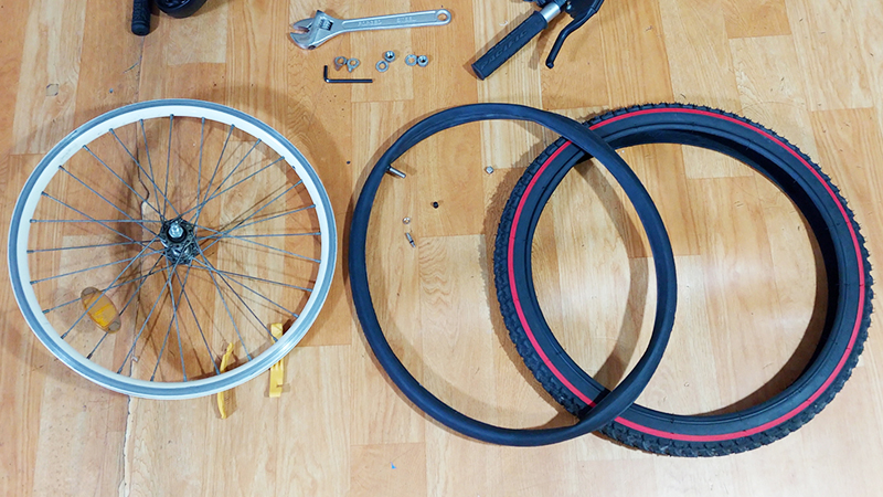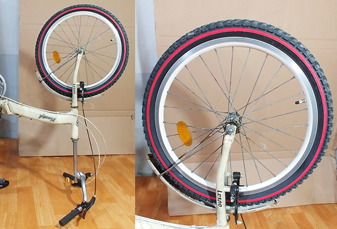 마침, 앞바퀴의 타이어 튜브에 펑크가 발생해서 튜브 교체를 하였습니다.