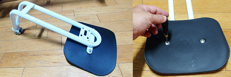 사진처럼 검정 프라스틱 부분과 흰색 프레임을 좀전에 분리하였던 볼트와 너트로 고정한 후, 드라이버 또는 몽키스패너를 이용하여 풀리지 않도록 고정합니다.