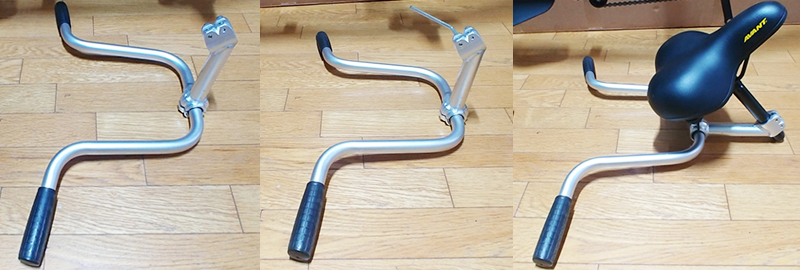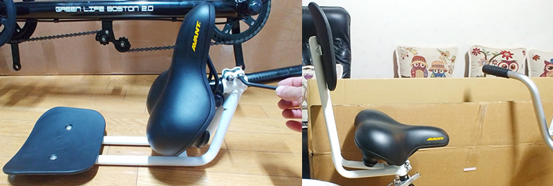 뒷좌석 핸들이 장착된 앞좌석 안장을 자전게에 장착한 후, 뒷좌석 핸들의 각도를 적당히 잡고 고정합니다.