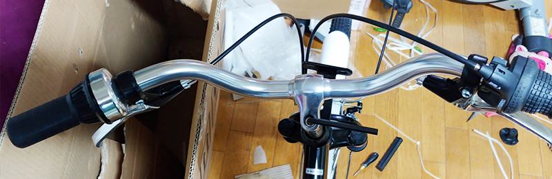 자전거 핸들의 가운데 고정 볼트에 육각렌치를 꽂을 후, 자전거에 올라타서 핸들과 자전거 바퀴가 수직으로 되도록 각도를 잡은 후, 육각렌치로 핸들과 앞바퀴 프레임을 단단히 고정합니다.