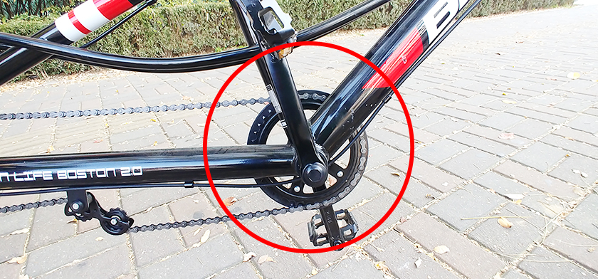 또다른 이유는, 뒷좌석의 크랭크에 60T 체인링을 조립하기 위해서는 크랭크를 개조해야하고, 조립시 결합 상태가 불안정할 것 같았으며, 60T 체인링의 크기가 큰 반면에 사용하고있는 2인용 텐덤 자전거의 뒷좌석 크랭크 조립 구조 공간이 1단의 큰 체인링을 바로 장착하기 어려울 정도로 틈이 없습니다.