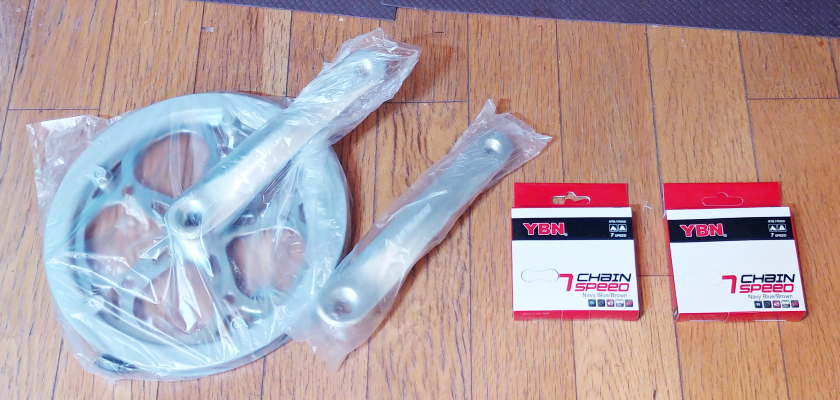 구매한 크랭크셋과 체인2개가 도착하였습니다.