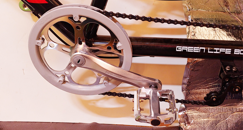 2인승 자전거의 체인링의 톱니수가 큰 크랭크셋으로 교체하였습니다.
