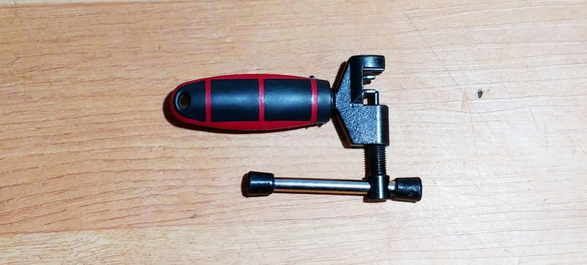 체인절단기 또는 체인리무버라고 합니다. 체인을 절단하는데 사용되며, 체인 마디를 연결하는 핀을 제거하여 체인 마디를 분리하는 도구입니다. 체인 교체하는 과정 중에서 대체가 불가능한 제일 중요한 도구인 듯 합니다.