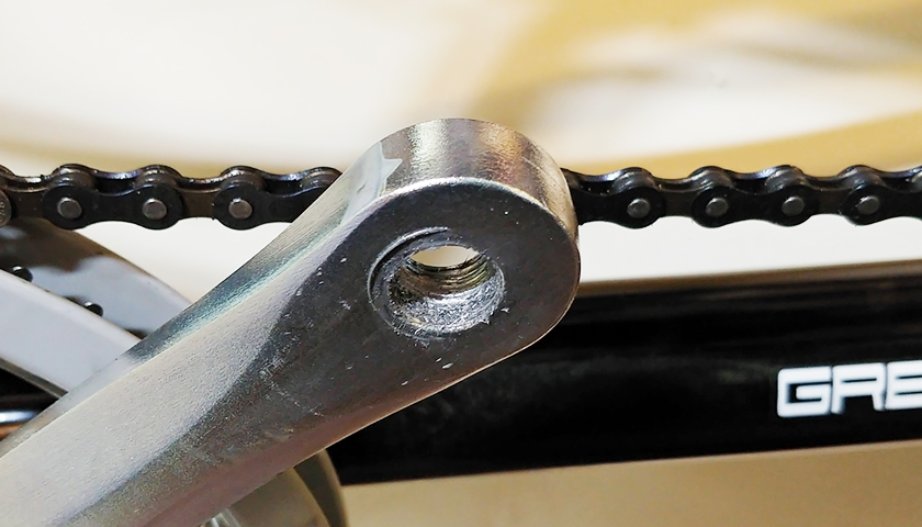페달이 조립되는 크랭크암의 나사선이 완전히 파손되었습니다.