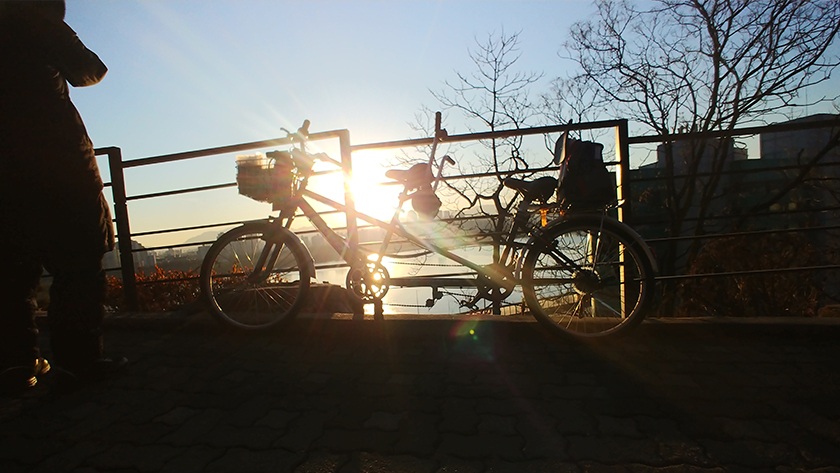 2인용 텐덤 자전거를 타고 광진교에 갔습니다.