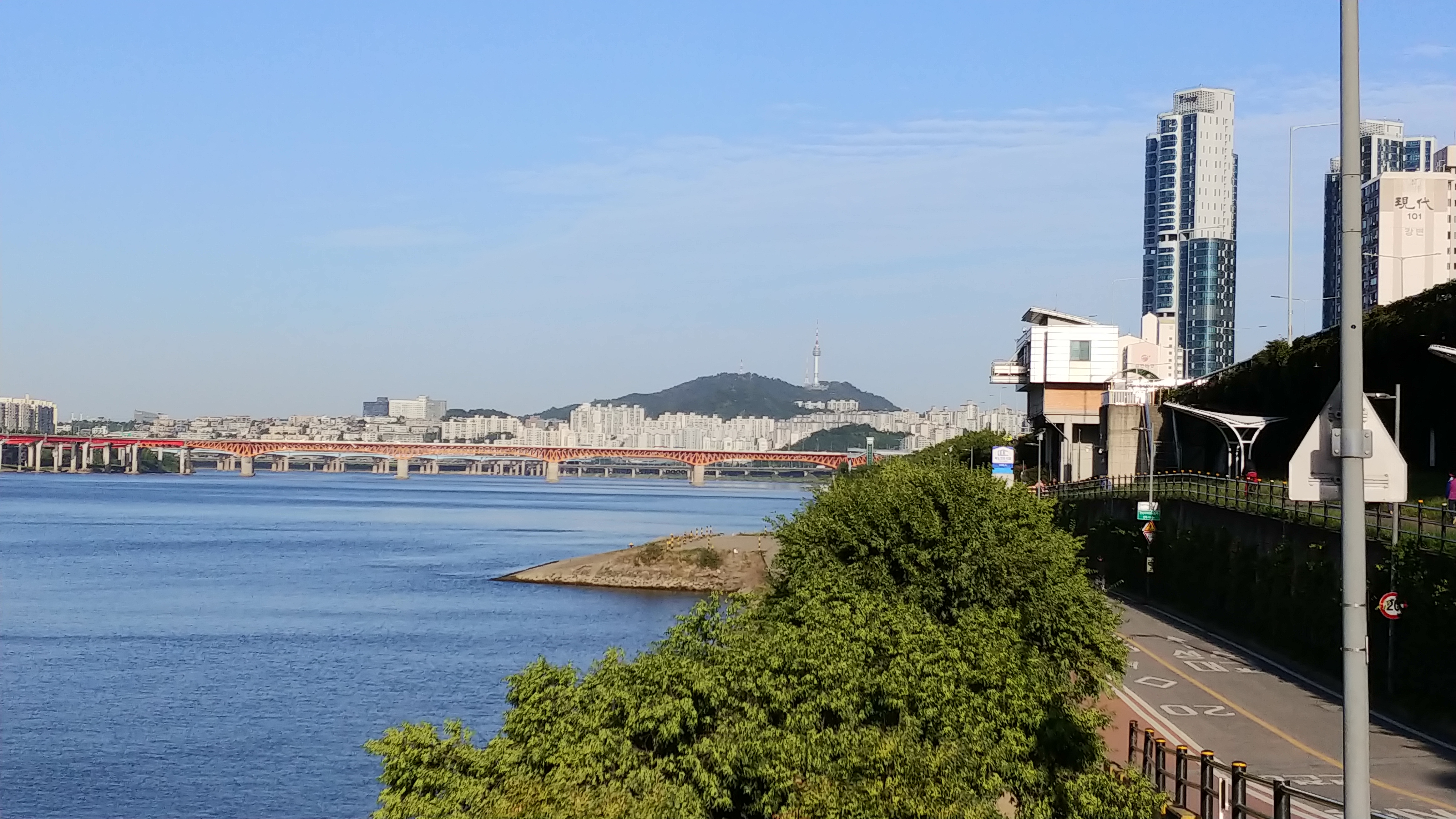 여름처럼 같으면서도 시원하고 맑은 가을 날씨의 출근길 아침 한강 경치입니다.자전거 라이딩으로 출근하다가 사진으로 남깁니다.