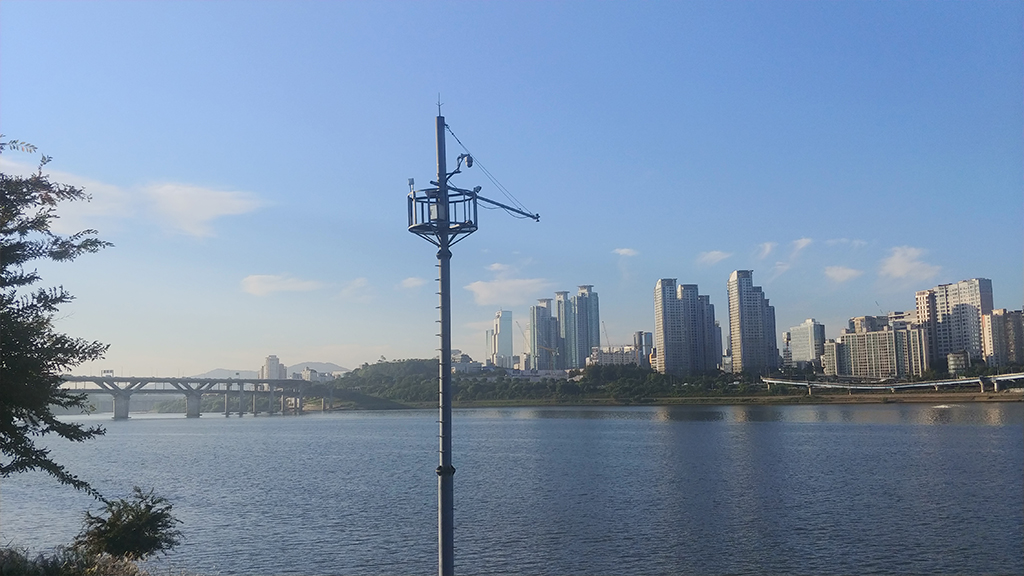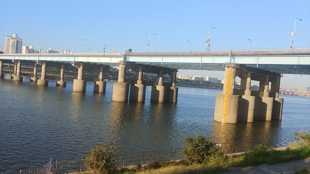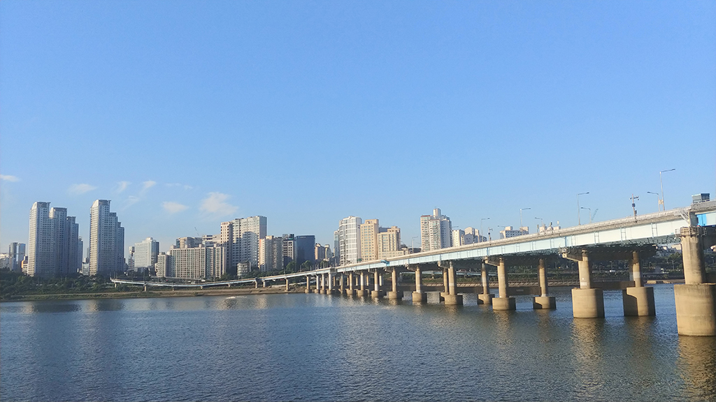 하늘 뿐만 아니라 한강도 파란 빛깔이었습니다.