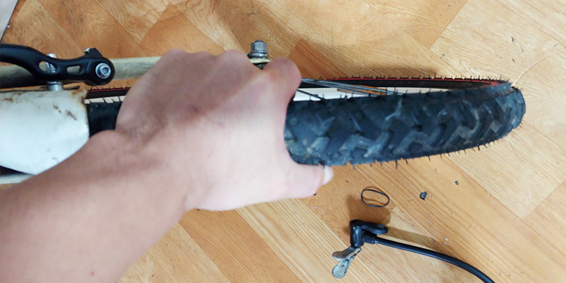 14. 자전거를 정상적으로 다시 뒤집어 놓은 후, 타이어에 공기를 3분의 2정도만 채워줍니다.
