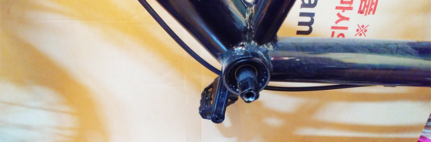 앞에서 분리한 육각머리볼트는 크랭크가 조립된 회전 중심축이면서 자전거 차체에 조립되어 있는 바텀 브라켓 BB에 고정된 것입니다.