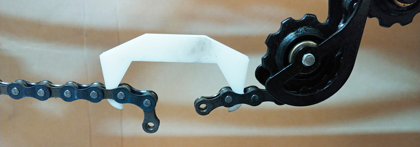2개의 체인의 끝의 구멍에 각각 체인링크 반쪽을 끼워서 연결한 후,