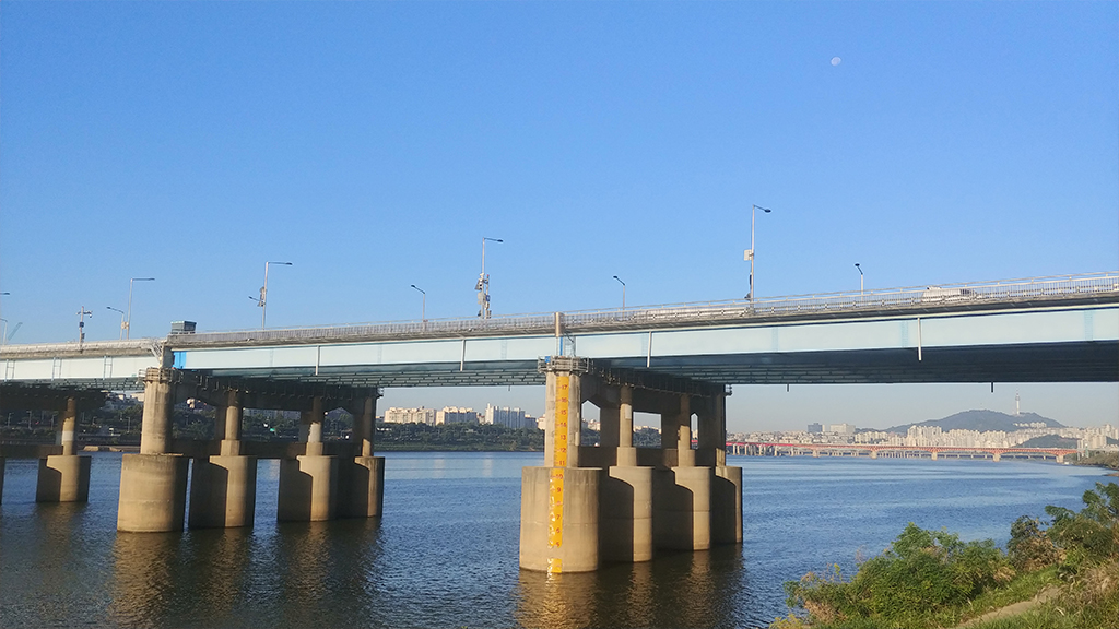 하늘 뿐만 아니라 한강도 파란 빛깔이었습니다.